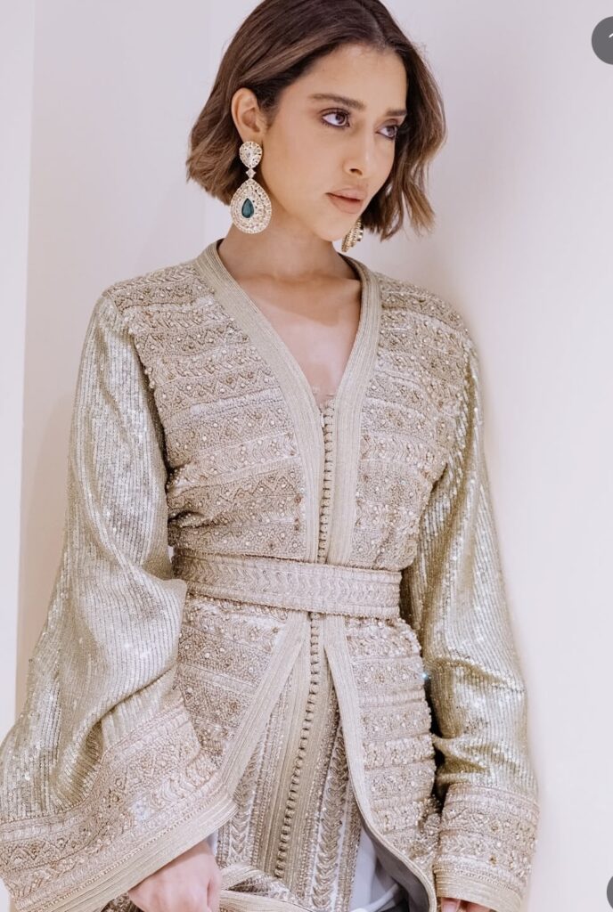 Le caftan haute couture est devenu un symbole d’élégance et de prestige pour les célébrités et influenceuses. Entre tradition marocaine et modernité, il :