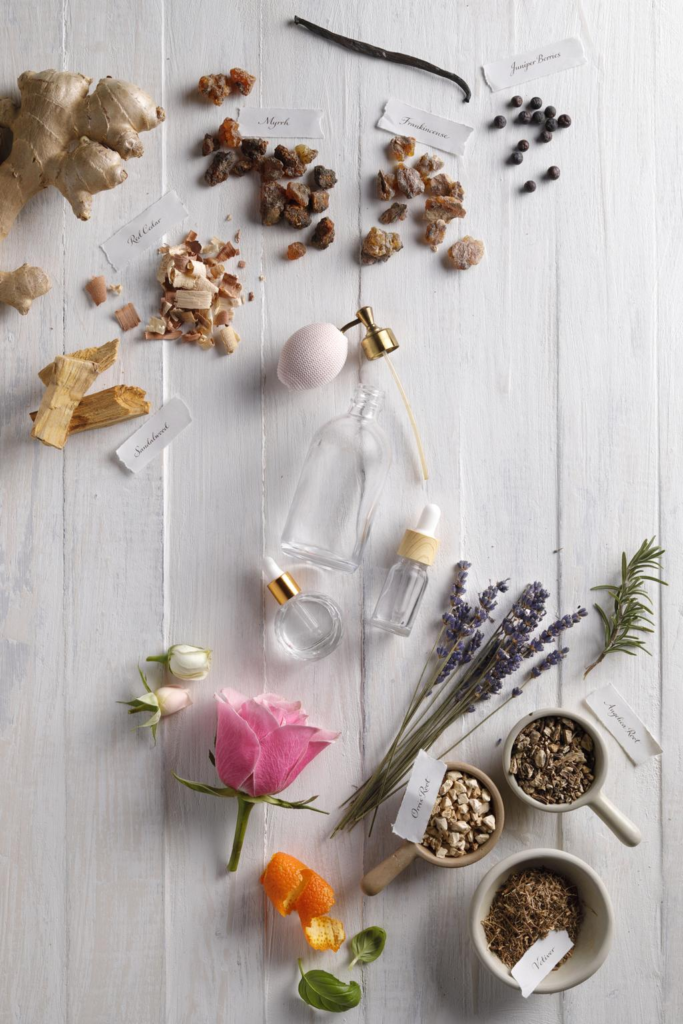 - Des ingrédients d’origine naturelle (fleurs, plantes, huiles essentielles)